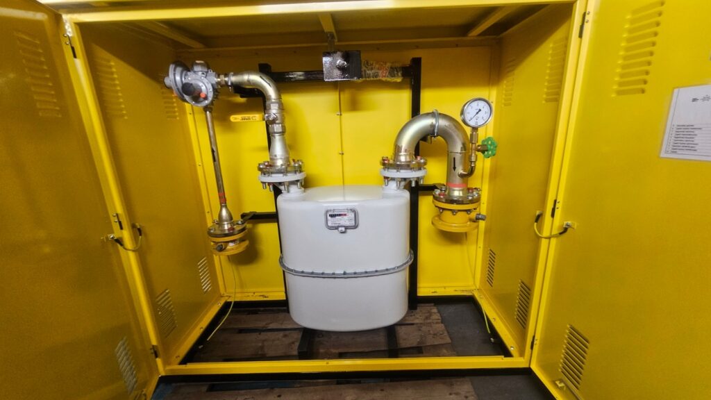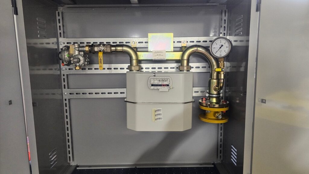 W zależności od zapotrzebowania wykonane punkty montowane są w metalowych szafkach naściennych lub wolnostojących z postumentami które mogą zawierać następujące elementy: 1. gazomierz miechowy G10, przepustowość Qmax =16m3, reduktor FM10 2. gazomierz miechowy G16 przepustowość Qmax =25m3, reduktor FM25 3. gazomierz miechowy G25 przepustowość Qmax =40m3, reduktor FMS 4. gazomierz miechowy G40 przepustowość Qmax =60m3, reduktor FMX 5. filtr gazu, 6. manometry tarczowe na wlocie i wylocie, 7. telemetryczny rejestratory impulsów do zdalnego odczytu stanu gazu, 8. monozłącze na kilka gazomierzy.